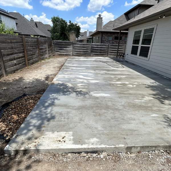 We build patios for real Texas conditions. That means compacted bases, reinforced edges, correct PSI mixes, saw-cut joints, proper slopes for drainage, and slip-resistant broom finishes. Want a complete upgrade? We can add walkways, steps, sidewalk connections, seating pads, fire pit bases, or additional slabs to unify your outdoor space and increase usable square footage.